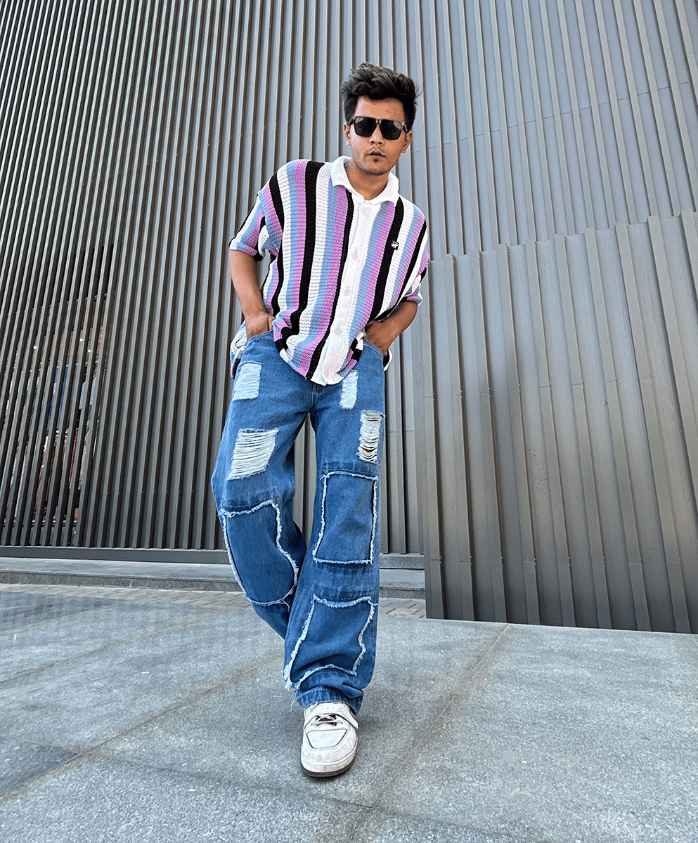 Immerse yourself in the FreeFlow experience with our denim pants. The tactile allure of furry edges on the cross patch adds a dimensional charm to these 100% pure premium cotton pants.
