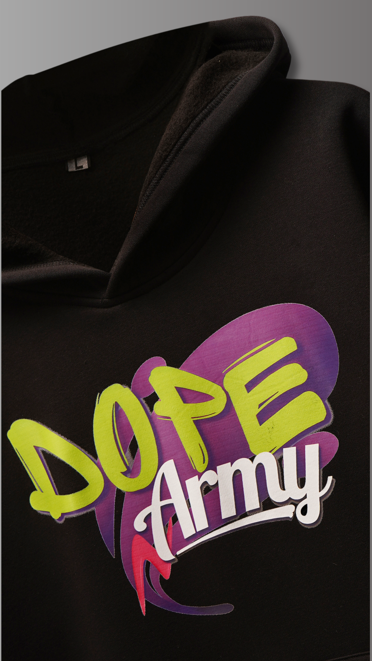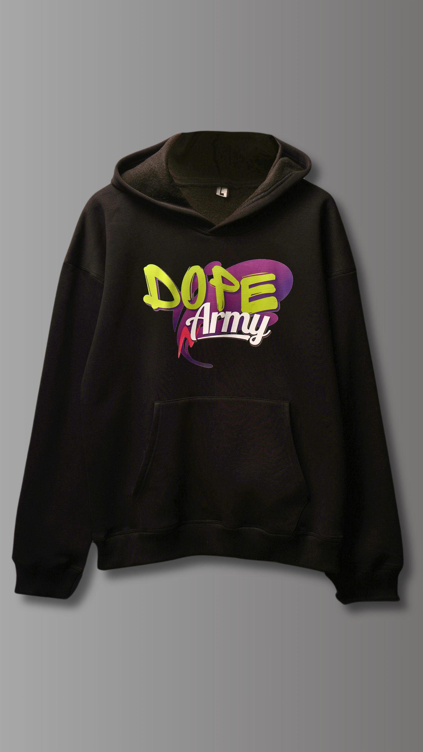 With a bold, rainbow-colored weed leaf printed on the back, and “Dope Army” stamped on the front, this hoodie is an open invite to join the most laid-back, creative crew out there. Whether you're chilling, vibin', or creating, this is your uniform for unleashing max creativity.