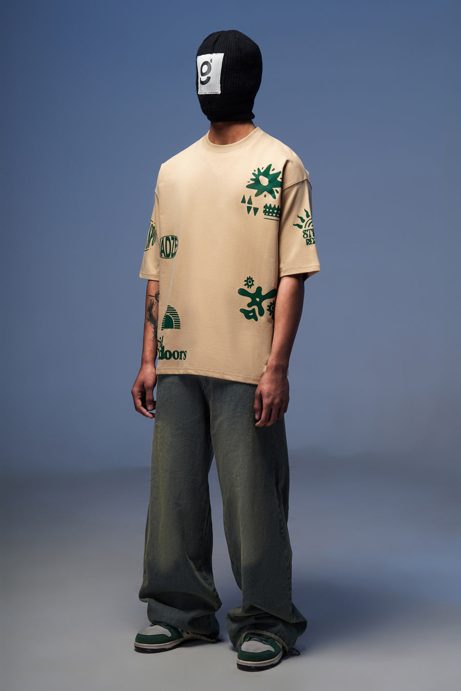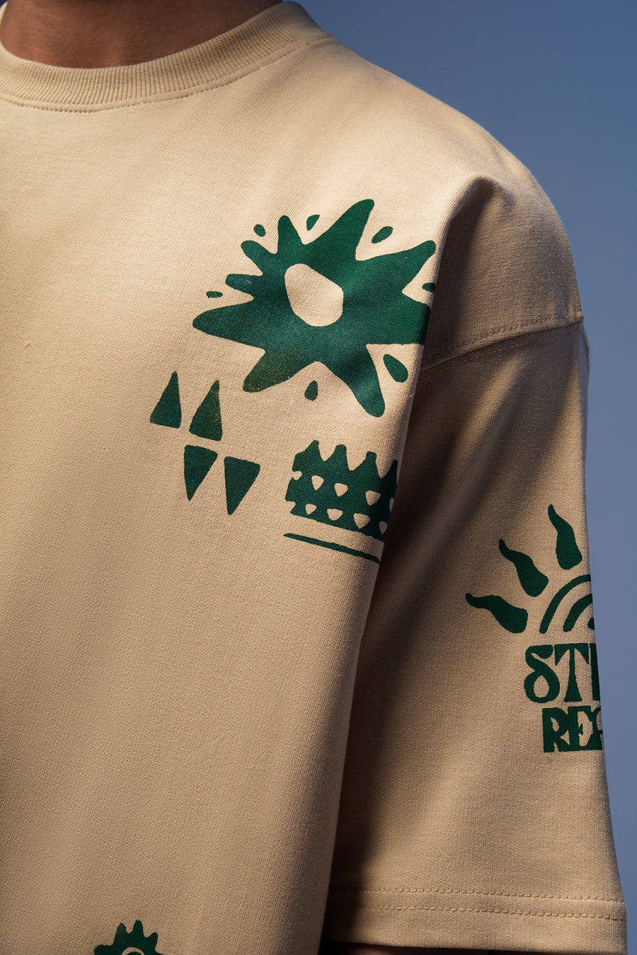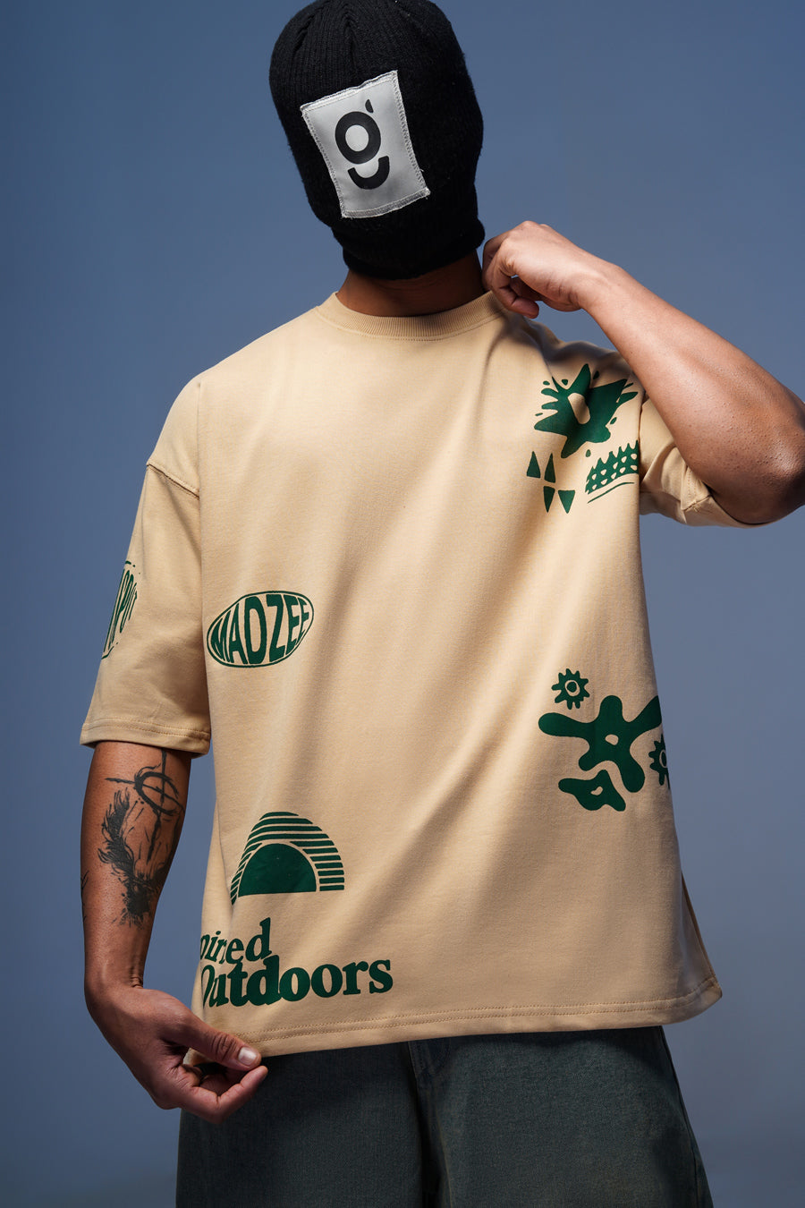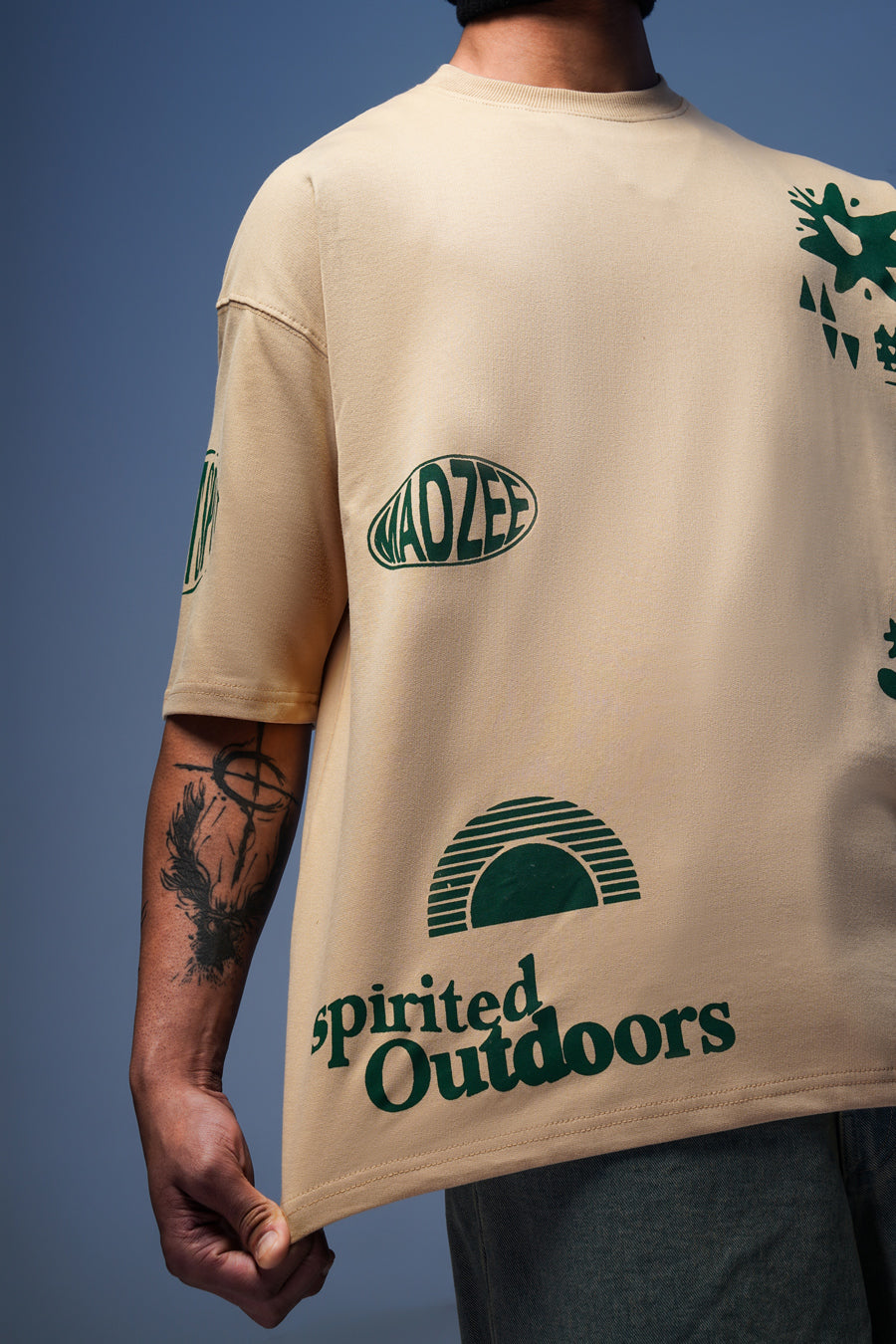 Introducing the Spirited Outdoors Tee – your go-to oversized beige t-shirt that embodies adventure. Featuring a bold all-over green print, this tee brings a vibrant touch to your wardrobe, inspiring you to embrace your adventurous spirit. The relaxed fit ensures ultimate comfort, whether you're exploring the city, chilling with friends, or hitting the trails. It’s the perfect blend of style and laid-back vibes, reminding you to chase your passions and make the most of every moment. Pair it with your favorite shorts or cargos for a chill look that stands out. Wear this tee as a statement of your fearless pursuit of life and adventure!