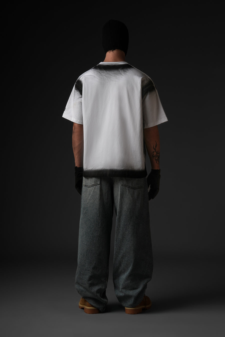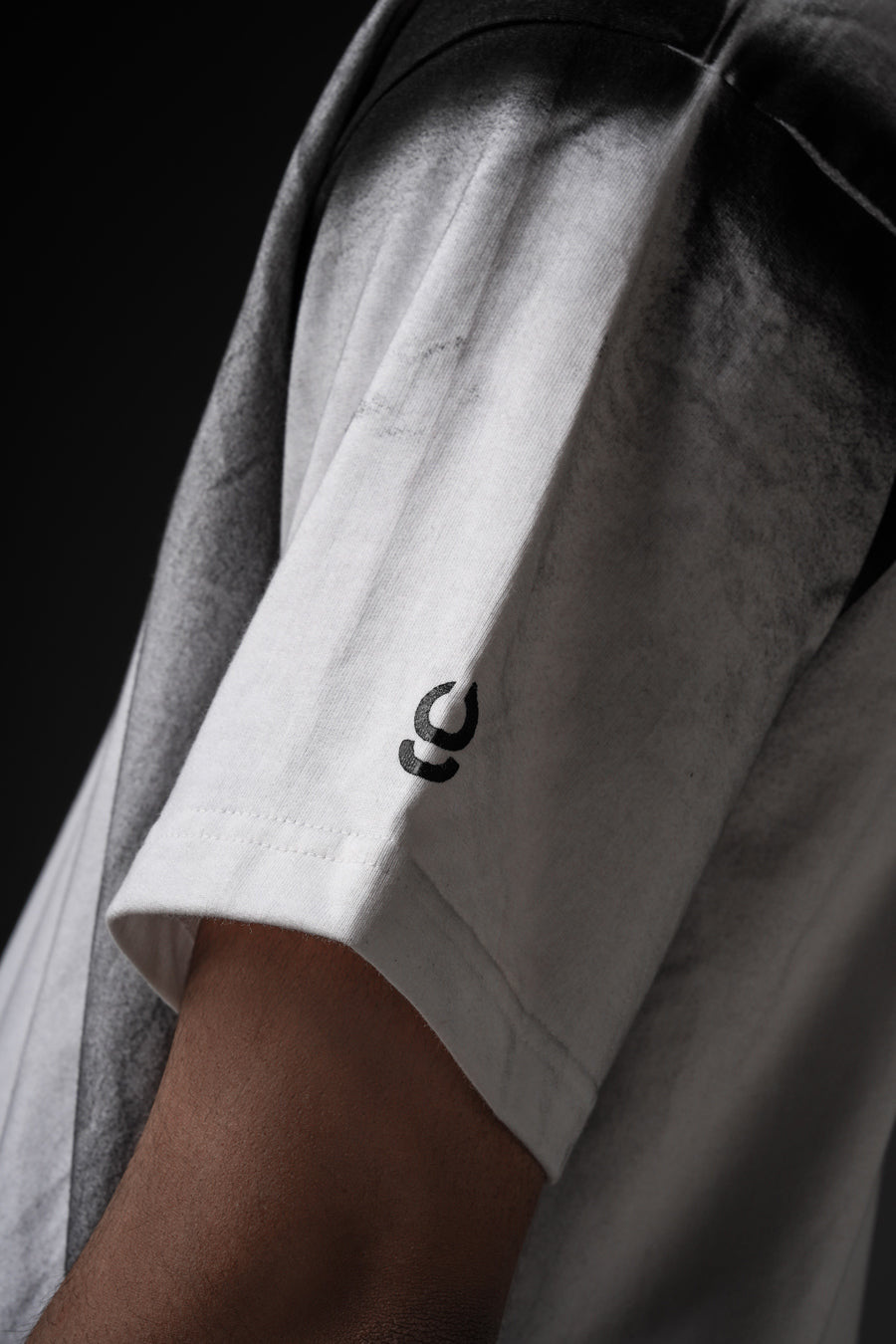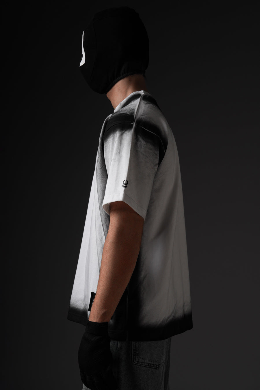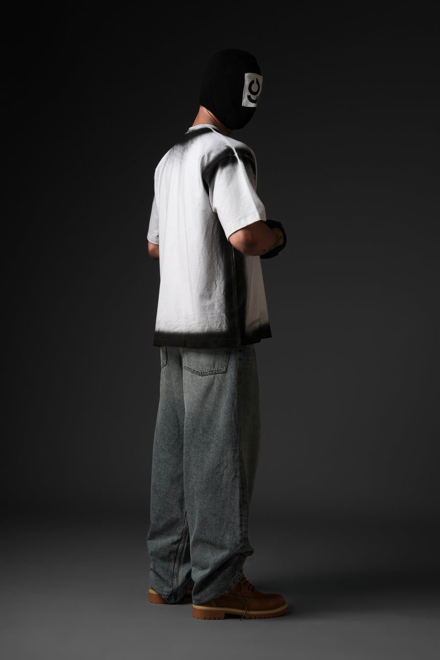 Cut from 100% cotton terry, this oversized tee channels street culture through a sharp monochrome gradient. The soft fade at the neckline sets a bold contrast, balanced by the structured silhouette. Finished with a signature brand patch at the hem, it embodies understated edge with refined execution.